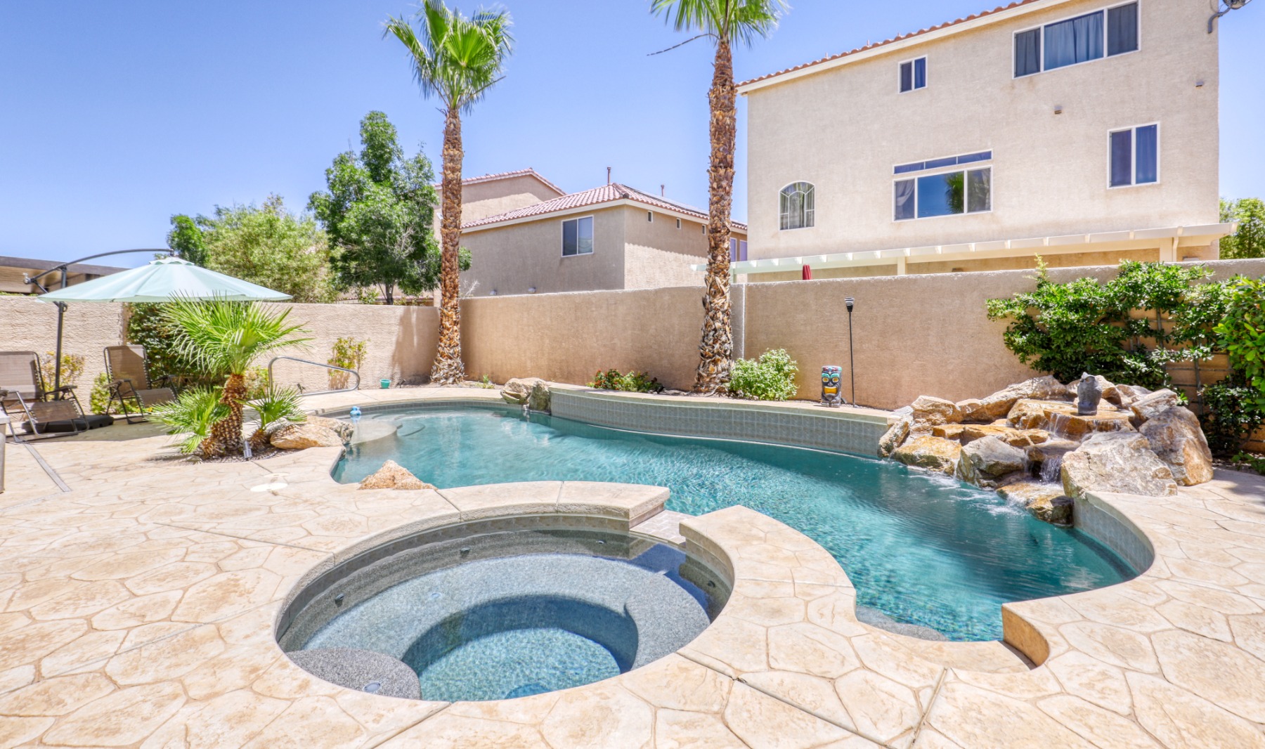 This stunning home is located just a few miles from the new Las Vegas Raiders NFL practice facility in Henderson Nevada. Local shopping and retail all are with in just a very short drive. The home itself has 4 larger bedrooms with an oversized master. Both formal living and dining areas are available downstairs. The kitchen is open and connected to a large family room to keep the family together and enjoy entertaining. Upstairs, included a large loft for more entertaining or seclusion. Outside we have a Pebble Tech pool and spa, BBQ hookups and waterfall feature. Inside the home has upgrades to include plantation shutters, tankless water heater for constant hot water and central vacuum. Did we mention the home has solar? Low energy bills make this home very desirable.