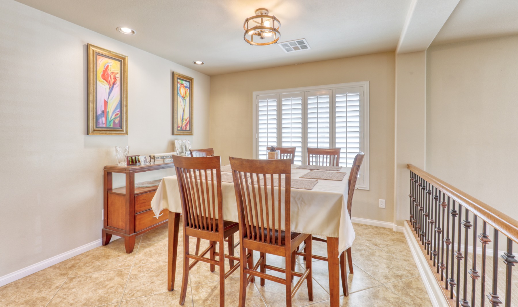 This spacious kitchen is open to family areas and upgraded with granite counter tops, upgraded cabinets, tile floors with central vacuum for floor spills and breakfast bar.
